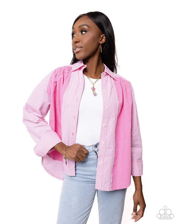 Cascading along an abstract gold chain, a collection of whimsical charms including an orchid-painted butterfly silhouette, a lavender-painted gold flower, and an iridescent teardrop gem extends below the neckline for a glittery finish. Features an adjustable clasp closure. Sold as one individual necklace. Includes one pair of matching earrings.