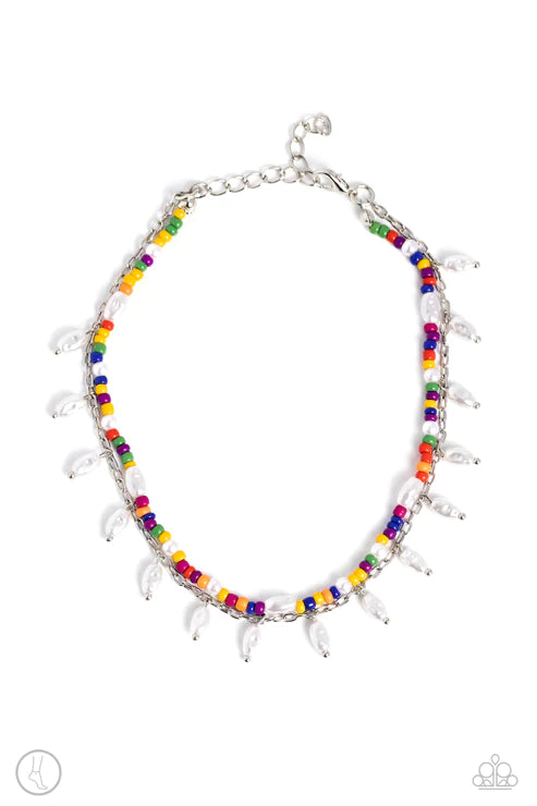 Seed beads in multicolored shades mingle with pearls in a variety of shapes for a charismatic finish. A dainty silver chain, with dangling dainty oval pearls combines with the seed bead strand for a beach-inspired finish. Features an adjustable clasp closure.