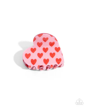 Featuring sprinkle-inspired red heart details, a pink heart clip holds the hair away from the face for an on-the-go Valentine's-inspired display. Clip measures approximately 2 1/2" in length and 2" in width.