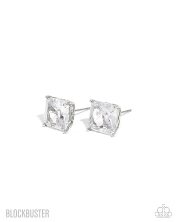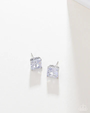 Featuring a timeless princess-style cut, a dramatic white gem is pressed into sleek silver-pronged fittings along the ear for a statement-making shimmery look. Earring attaches to a standard post fitting.