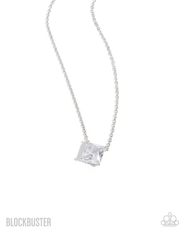 Featuring a timeless princess-style cut, a dramatic white gem is pressed into sleek silver-pronged fittings below the neckline on a classic chain for a statement-making shimmery look. Features an adjustable clasp closure. Sold as one individual necklace. Includes one pair of matching earrings.