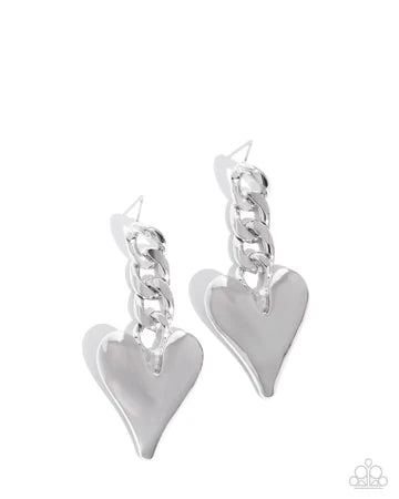 Featuring a silver-studded center, a glistening teardrop hematite-pointed star post gives way to layers of silver chains and white rhinestones in silver square fittings for a subversive stellar look. Earring attaches to a standard post fitting.