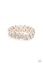 Glittery white rhinestones alternate with classy brown pearls along a coiled wire, creating an elegant infinity wrap bracelet around the wrist.