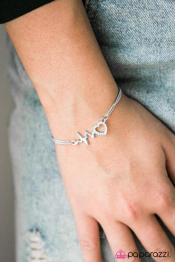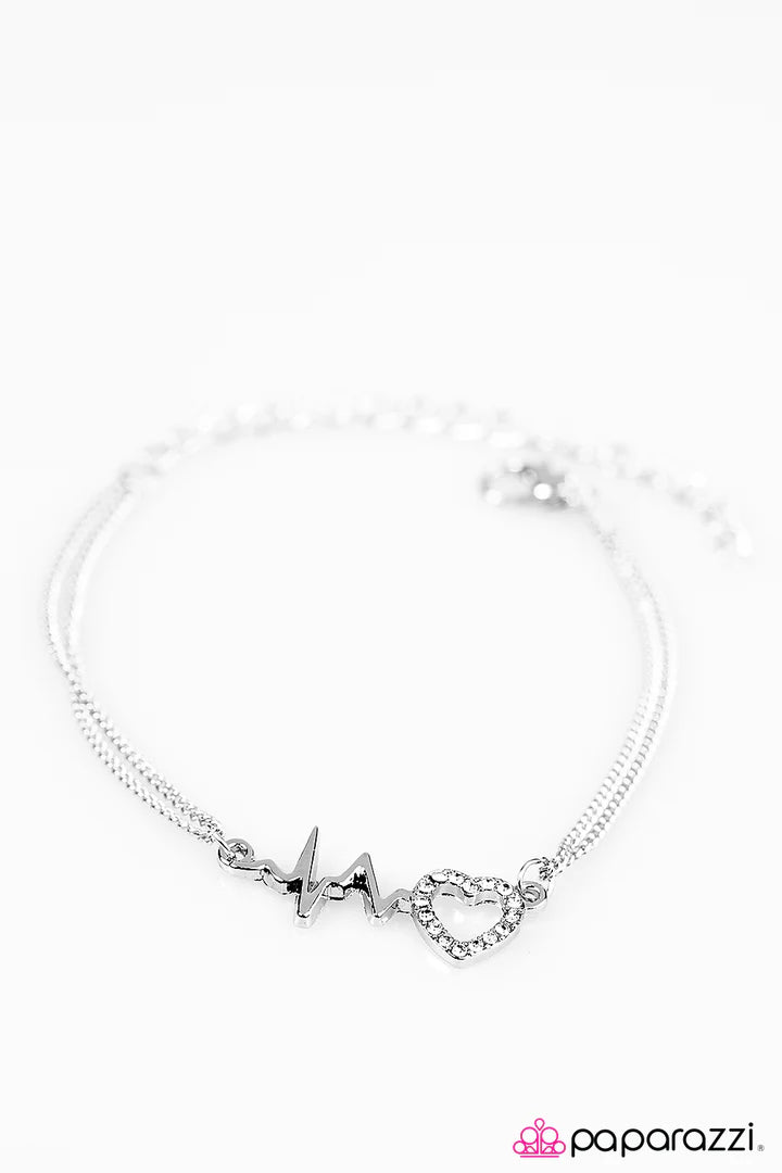 Reminiscent of a heartbeat, a wavy silver bar attaches to a charming heart silhouette for a simply beautiful display. Dazzling white rhinestones are sprinkled along the heart charm for a sparkling finish. Features an adjustable clasp closure.