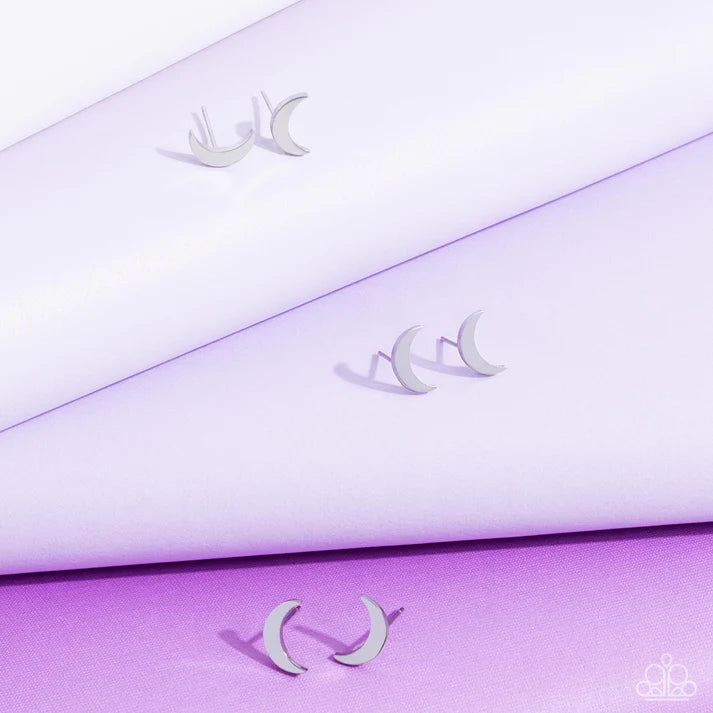Sleek crescent moon studs are crafted from stainless steel, offering a minimalist yet durable design. The polished silver surface adds a refined touch, making these simple crescent studs versatile for everyday wear. Earrings attach to a standard post fitting.