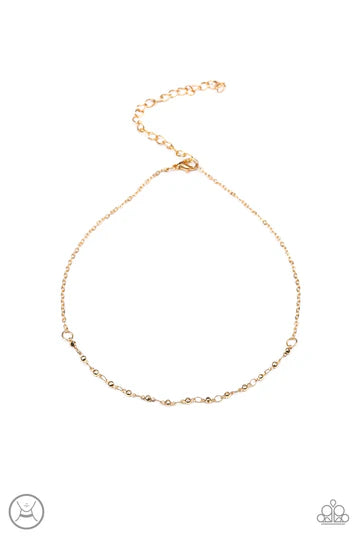 A row of dainty gold satellite chain wraps around the neck for an edgy look. Features an adjustable clasp closure.