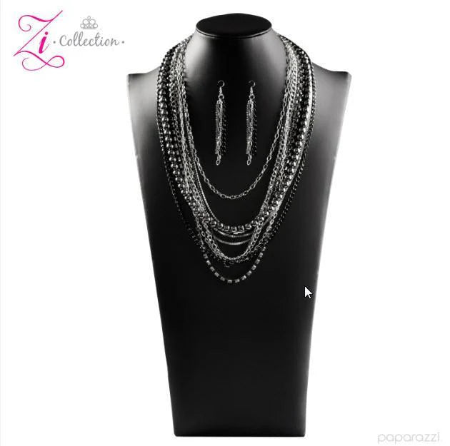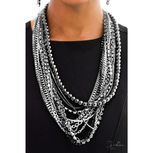 Rows of glistening gunmetal beads, silver box-chain, and edgy black chain drape into endless layers of shimmer. Infused with rows of classic silver chains, strands of black and smoky rhinestones pressed into square frames drip between the bulky layers, adding an epic shimmer to the grunge-esque palette. Features an adjustable clasp closure.
