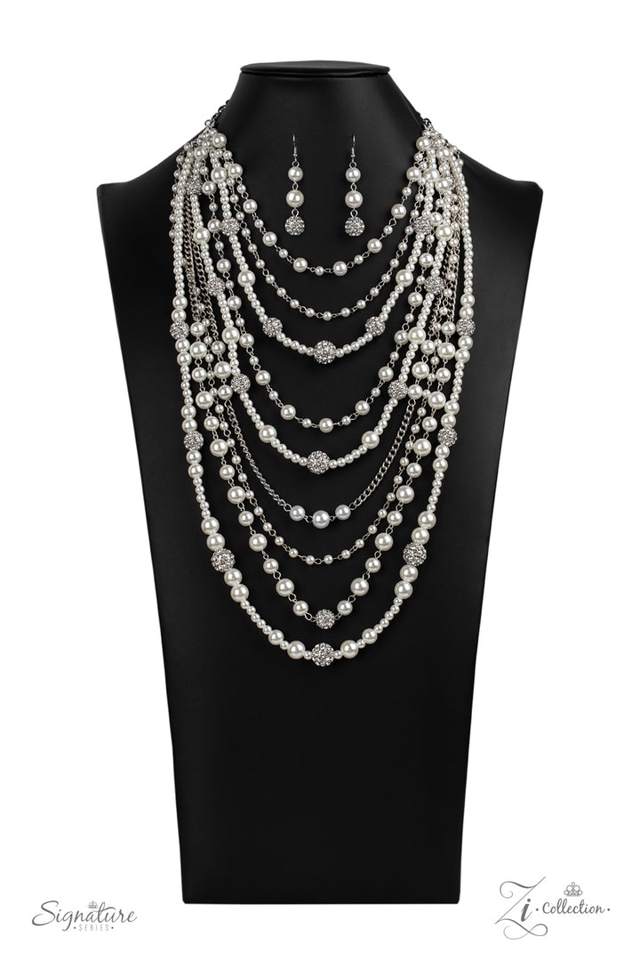 An elegant collection of timeless white pearls, shiny sections of silver chain, and bedazzling white rhinestone encrusted silver beads effortlessly cascade down the chest. The vintage inspired layers drape into breathtaking rows of radiance, resulting in an irresistible collision of romance. Features an adjustable clasp closure.