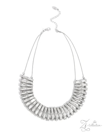 Shimmery bars, made up of stacks of emerald-cut white gems, slide along two skinny snake chains, with sleek metallic beads separating each one. Duos of dainty white rhinestones are stamped across the surface of each layer, emitting a timeless twinkle, resulting in a collision of light-reflecting texture and sheen. Features an adjustable clasp closure.