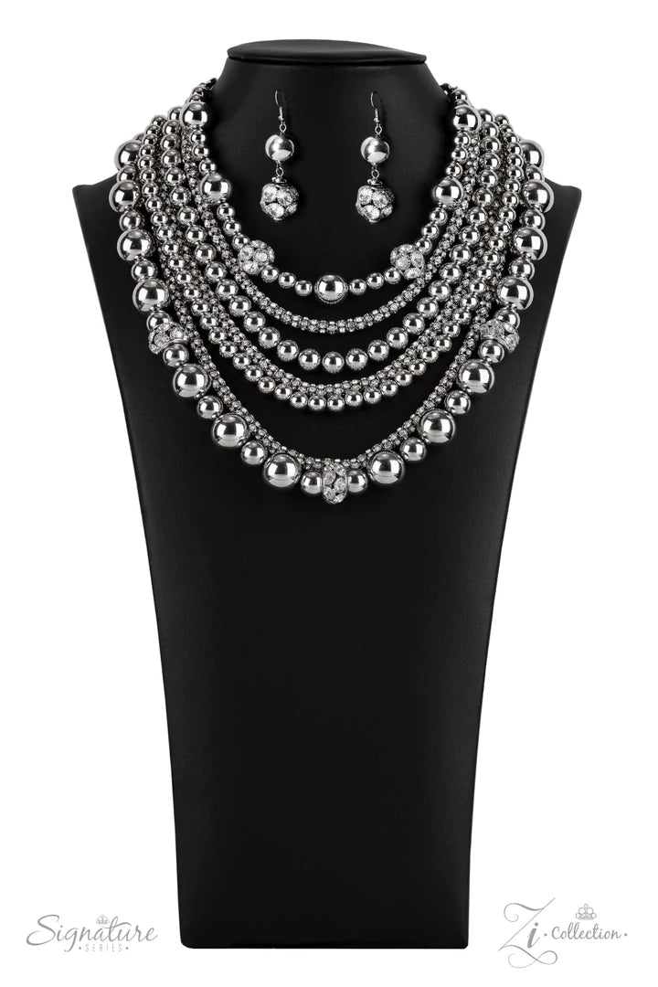 Held together by rectangular silver frames, a couture-clutching collection of oversized silver beads interspersed with white rhinestone encrusted ornaments alternates with interlocking rows of white rhinestone encrusted chains across the chest. Edgily enhanced with linked rows of silver chain fittings, the emboldened silver layers demand to be seen with their unapologetic attitude. Features an adjustable clasp closure.